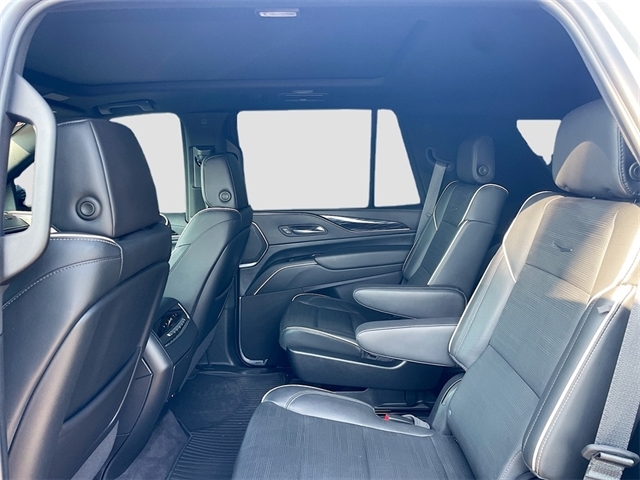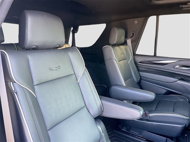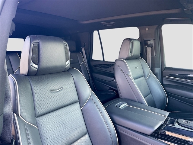Black Leather, 16.9`` Diagonal OLED Infotainment Screen, 19 Speakers, 2-Presets Memory For Driver Seat Adjuster, 2-Way Driver Power Lumbar Seat Adjuster, 2-Way Front Passenger Power Lumbar Seat Adjuster, 3 Years of OnStar & Connected Services Plan, 3.23 Axle Ratio, 3rd row seats: split-bench, 4-Way Power Driver Lumbar Seat Adjuster, 4-Way Power Front Passenger Lumbar Seat Adjuster, 4-Wheel Disc Brakes, 8-Way Power Driver Seat Adjuster, 8-Way Power Front Passenger Seat Adjuster, ABS brakes, Adaptive Cruise Control, Adaptive suspension, Air Conditioning, Air Ride Adaptive Suspension, AKG Studio 19-Speaker Audio System, Alloy wheels, AM/FM radio: SiriusXM with 360L, Apple CarPlay/Android Auto, Audio memory, Auto High-beam Headlights, Auto tilt-away steering wheel, Auto-dimming door mirrors, Auto-dimming Rear-View mirror, Automatic Seat Belt Tightening, Automatic temperature control, Body-Color Door Handles, Brake assist, Bumpers: body-color, Compass, Delay-off headlights, Door Lock & Latch Shields, Driver door bin, Driver vanity mirror, Dual front impact airbags, Dual front side impact airbags, Electronic Limited-Slip Differential, Electronic Stability Control, Emergency communication system: OnStar and Cadillac connected services capable, Enhanced Automatic Emergency Braking, Enhanced Automatic Parking Assist, Exterior Parking Camera Rear, Four wheel independent suspension, Front anti-roll bar, Front Bucket Seats, Front Center Armrest w/Storage, Front dual zone A/C, Front License Plate Bracket, Front reading lights, Fully automatic headlights, Garage door transmitter, Glass Breakage Sensor, Gloss Black Escalade Nameplate (LPO), HD Radio, Heads-Up Display, Heated & Ventilated Driver & Front Passenger Seats, Heated door mirrors, Heated Driver & Front Passenger Seats, Heated front seats, Heated rear seats, Heated steering wheel, Hitch Guidance w/Hitch View, Illuminated entry, Illuminating Front & Rear Sill Plates, Integrated Trailer Brake Controller, Leather Seating Surfaces w/Precision Perf Inserts, Low tire pressure warning, Magnetic Ride Control Suspension, Memory seat, Navigation System, Not Equipped w/2nd Row Express-Up Window Control, Not Equipped w/4-Way Driver & Fr Pass Pwr Lumbar, Not Equipped w/Super Cruise, Not Equipped w/Super Cruise (00U), Occupant sensing airbag, Outside temperature display, Overhead airbag, Overhead console, Panic alarm, Passenger door bin, Passenger vanity mirror, Power door mirrors, Power driver seat, Power Liftgate, Power moonroof, Power Panoramic Tilt-Sliding Sunroof, Power passenger seat, Power steering, Power windows, Power-Retractable Assist Steps, Preferred Equipment Group 1SC, Puddle Lamps w/Cadillac Crest (LPO), Radio data system, Radio: AM/FM w/Navigation, Rain sensing wipers, Rear air conditioning, Rear anti-roll bar, Rear Camera Mirror, Rear Camera Mirror Washer, Rear Cross Traffic Alert, Rear reading lights, Rear window defroster, Rear window wiper, Reconfigurable Full-Color Head-Up Display, Remote keyless entry, Reverse Automatic Braking, Running Board Assist Steps, Security system, SiriusXM w/360L, Smart Trailer Integration Indicator, Soft Closing Front & Rear Doors, Speed control, Split folding rear seat, Spoiler, Steering wheel memory, Steering wheel mounted audio controls, Super Cruise, Tachometer, Teen Driver, Telescoping steering wheel, Theft-Deterrent Alarm System, Tilt steering wheel, Touring Package, Traction control, Trailer Side Blind Zone Alert, Trip computer, Turn signal indicator mirrors, Variably intermittent wipers, Vehicle Inclination Sensor, Vehicle Interior Movement Sensor, Ventilated front seats, Voltmeter, Wheels: 22`` 12-Spoke Polished Alloy, Wireless Apple CarPlay/Wireless Android Auto, Black Leather. R