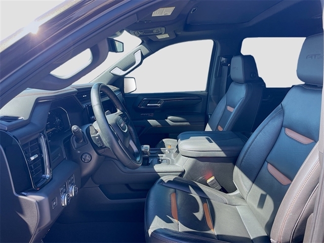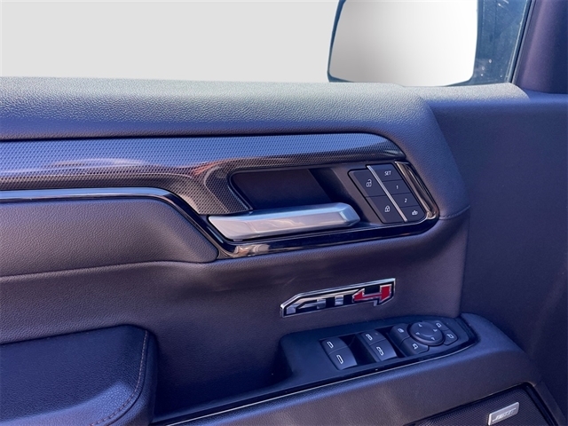 10-Speed Automatic, 4WD, Jet Black With Kalahari Accents Leather, 10-Way Power Driver Seat Adjuster w/Lumbar, 10-Way Power Passenger Seat Adjuster w/Lumbar, 120-Volt Bed Mounted Power Outlet, 120-Volt Instrument Panel Power Outlet, 18`` x 8.5`` Machined Aluminum Wheels, 2 Charge/Data USB Ports Inside Center Console, 2 Type-C Charge-Only Rear USB Ports, 2 USB Ports, 220 Amp Alternator, 3.23 Rear Axle Ratio, 4-Wheel Disc Brakes, 7 Speakers, ABS brakes, Adaptive Cruise Control, Air Conditioning, Alloy wheels, AM/FM radio, Apple CarPlay/Android Auto, AT4 Preferred Package, Auto High-beam Headlights, Auto-dimming door mirrors, Auto-dimming Rear-View mirror, Auto-Locking Rear Differential, Automatic Emergency Braking, Automatic temperature control, Black Chrome Header & Grille Insert Bars, Block heater, Brake assist, Buckle to Drive, Bumpers: body-color, Color-Keyed Carpeting Floor Covering, Compass, Deep-Tinted Glass, Delay-off headlights, Driver door bin, Driver Memory, Driver vanity mirror, Dual front impact airbags, Dual front side impact airbags, Electric Rear-Window Defogger, Electrical Steering Column Lock, Electronic Stability Control, Emergency communication system: OnStar and GMC connected services capable, Engine Block Heater, Floor-Mounted Center Console, Following Distance Indicator, Forward Collision Alert, Front anti-roll bar, Front Bucket Seats, Front Center Armrest, Front dual zone A/C, Front fog lights, Front License Plate Kit, Front Pedestrian Braking, Front Prem Floor Liners w/Removable Carpet Insert, Front Rainsensing Wipers, Front reading lights, Front wheel independent suspension, Fully automatic headlights, GMC Connected Access Capable, HD Surround Vision, Heated 2nd Row Outboard Seats, Heated door mirrors, Heated Driver & Front Outboard Passenger Seating, Heated front seats, Heated rear seats, Heated steering wheel, Heavy-Duty Air Filter, Hill Descent Control, Hitch Guidance, Hitch Guidance w/Hitch View, Illuminated entry, In-Vehicle Trailering App, Integrated Trailer Brake Controller, IntelliBeam Automatic High Beam On/Off, Keyless Open & Start, Lane Keep Assist w/Lane Departure Warning, LED Cargo Area Lighting, Low tire pressure warning, Memory seat, Navigation System, Not Equipped w/Steering Column Lock, Occupant sensing airbag, Off-Road Suspension, OnStar & GMC Connected Services Capable, Outside temperature display, Overhead airbag, Overhead console, Panic alarm, Passenger door bin, Passenger vanity mirror, Perforated Front Leather Seat Trim, Perimeter Lighting, Power Door Locks, Power door mirrors, Power driver seat, Power Front Passenger Windows w/Express Up/Down, Power Front Windows w/Driver Express Up/Down, Power passenger seat, Power Rake & Telescoping Steering Column, Power Rear Windows w/Express Down, Power Sliding Rear Window w/Rear Defogger, Power steering, Power Sunroof, Power windows, Preferred Equipment Group 4SB, Premium audio system: GMC Infotainment System, Premium Bose 7-Speaker Sound System, Push Button Start, Radio data system, Radio: Premium GMC Infotainment Audio System, Rain sensing wipers, Rear Cross Traffic Braking, Rear Pedestrian Detection, Rear Prem Floor Liners w/Removable Carpet Insert, Rear reading lights, Rear seat center armrest, Rear step bumper, Rear Underseat Storage (LPO), Rear Wheelhouse Liners, Rear window defroster, Red Recovery Hooks, Remote keyless entry, Remote Vehicle Starter System, Safety Alert Seat, Security system, SiriusXM w/360L, Speed control, Speed-sensing steering, Split folding rear seat, Spray-On Pickup Bed Liner w/AT4 Logo, Steering Wheel Audio Controls, Steering wheel mounted audio controls, Tachometer, Telescoping steering wheel, Theft Deterrent System (Unauthori