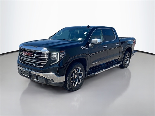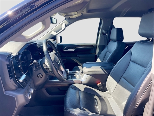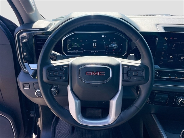 10-Speed Automatic, Jet Black Leather, 10-Way Power Driver Seat Adjuster w/Lumbar, 10-Way Power Passenger Seat Adjuster w/Lumbar, 120-Volt Bed Mounted Power Outlet, 120-Volt Instrument Panel Power Outlet, 170 Amp Alternator, 2 Charge/Data USB Ports, 2 Charge/Data USB Ports Inside Center Console, 2 Type-C Charge-Only Rear USB Ports, 20`` Polished Aluminum Wheels, 3.23 Rear Axle Ratio, 4-Wheel Disc Brakes, 6 Speakers, 6-Speaker Audio System Feature, ABS brakes, Adaptive Cruise Control, Air Conditioning, Alloy wheels, AM/FM radio, Apple CarPlay/Android Auto, Auto High-beam Headlights, Auto-dimming door mirrors, Auto-dimming Rear-View mirror, Auto-Locking Rear Differential, Automatic Emergency Braking, Automatic temperature control, Auxiliary External Transmission Oil Cooler, Body Color Wheel Arch Moldings (LPO), Brake assist, Buckle to Drive, Bumpers: chrome, Chrome Header & Chrome Grille Insert Bars, Chrome Wheel To Wheel Assist Steps, Color-Keyed Carpeting Floor Covering, Compass, Deep-Tinted Glass, Delay-off headlights, Driver door bin, Driver Memory, Driver vanity mirror, Dual front impact airbags, Dual front side impact airbags, Electric Rear-Window Defogger, Electrical Steering Column Lock, Electronic Precision Shift, Electronic Stability Control, Emergency communication system: OnStar and GMC connected services capable, Floor-Mounted Center Console, Following Distance Indicator, Forward Collision Alert, Front 40/20/40 Split-Bench Seat, Front anti-roll bar, Front Bucket Seats, Front Center Armrest w/Storage, Front dual zone A/C, Front fog lights, Front Frame-Mounted Black Recovery Hooks, Front License Plate Kit, Front Pedestrian Braking, Front Rainsensing Wipers, Front reading lights, Front wheel independent suspension, Fully automatic headlights, GMC Connected Access Capable, GMC MultiPro Tailgate Step Lights (LPO), HD Rear Vision Camera, HD Surround Vision, Heated 2nd Row Outboard Seats, Heated door mirrors, Heated Driver & Front Outboard Passenger Seating, Heated front seats, Heated steering wheel, High Capacity Suspension Package, Hitch Guidance, Hitch Guidance w/Hitch View, Illuminated entry, In-Vehicle Trailering App, Integrated Trailer Brake Controller, IntelliBeam Automatic High Beam On/Off, Keyless Open & Start, Lane Keep Assist w/Lane Departure Warning, LED Cargo Area Lighting, Low tire pressure warning, Manual Tilt-Wheel & Telescoping Steering Column, Memory seat, Navigation System, Not Equipped w/Steering Column Lock, Occupant sensing airbag, OnStar & GMC Connected Services Capable, Outside temperature display, Overhead airbag, Overhead console, Panic alarm, Passenger door bin, Passenger vanity mirror, Perf Leather-Appointed Front Outboard Seat Trim, Perimeter Lighting, Power Door Locks, Power door mirrors, Power driver seat, Power Front Passenger Windows w/Express Up/Down, Power Front Windows w/Driver Express Up/Down, Power passenger seat, Power Rake & Telescoping Steering Column, Power Rear Windows w/Express Down, Power Sliding Rear Window w/Rear Defogger, Power steering, Power windows, Preferred Equipment Group 4SA, Premium audio system: GMC Infotainment System, Premium Bose 7-Speaker Sound System, ProGrade Trailering System, Push Button Start, Radio data system, Radio: Premium GMC Infotainment Audio System, Rain sensing wipers, Rear Cross Traffic Braking, Rear Pedestrian Detection, Rear reading lights, Rear seat center armrest, Rear step bumper, Rear Wheelhouse Liners, Rear window defroster, Remote keyless entry, Remote Vehicle Starter System, Safety Alert Seat, Security system, Sierra Safety Plus Package, SiriusXM w/360L, SLT Convenience Package, SLT Preferred Package, Speed control, Speed-sensing steering, Split folding re
