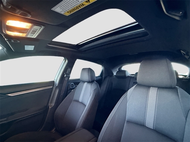 Black Cloth, 4-Wheel Disc Brakes, 8 Speakers, ABS brakes, Adaptive Cruise Control: Adaptive Cruise Control (ACC) with Low-Speed Follow, Air Conditioning, Alloy wheels, AM/FM radio: SiriusXM, Apple CarPlay/Android Auto, Auto High-beam Headlights, Automatic temperature control, Brake assist, Bumpers: body-color, Delay-off headlights, Driver door bin, Driver vanity mirror, Dual front impact airbags, Dual front side impact airbags, Electronic Stability Control, Emergency communication system: HondaLink, Exterior Parking Camera Rear, Fabric Seating Surfaces, Forward collision: Collision Mitigation Braking System (CMBS) + FCW mitigation, Four wheel independent suspension, Front anti-roll bar, Front Bucket Seats, Front Center Armrest, Front dual zone A/C, Front fog lights, Front reading lights, Fully automatic headlights, Heated door mirrors, Illuminated entry, Lane departure: Lane Keeping Assist System (LKAS) active, Leather Shift Knob, Low tire pressure warning, Occupant sensing airbag, Outside temperature display, Overhead airbag, Overhead console, Panic alarm, Passenger door bin, Passenger vanity mirror, Power door mirrors, Power driver seat, Power moonroof, Power steering, Power windows, Radio data system, Radio: 180-Watt HD Audio System, Rear anti-roll bar, Rear seat center armrest, Rear window defroster, Rear window wiper, Reclining Front Bucket Seats, Remote keyless entry, Security system, Speed control, Speed-sensing steering, Split folding rear seat, Spoiler, Steering wheel mounted audio controls, Tachometer, Telescoping steering wheel, Tilt steering wheel, Traction control, Trip computer, Variably intermittent wipers, Black Cloth.